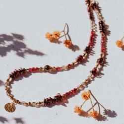 Biżuteria wykonana ze srebra próby 0,925 pokrytego 18-karatowym złotem. Naszyjnik z regulacją długości.