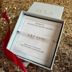 Połączenie dwóch wyjątkowych minerałów - morganitu oraz różowego kwarcu - ma silne działanie oczyszczające. Kamienie te pomagają w uzyskanie wewnętrznego spokoju i harmonii. Sprzyjają w pozbywaniu się nagromadzonego stresu. Przynoszą ukojenie i optymistyczne nastawienie, polecane szczególnie przy nowych przedsięwzięciach. Bransoletka NA OCZYSZCZENIE jest idealnym prezentem od serca dla osób, które pragną rozpocząć nowy etap w życiu pełny wewnętrznej siły.