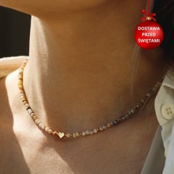 Naszyjnik z kamieni naturalnych - opal różowy, hematyt - z delikatnym serduszkiem.