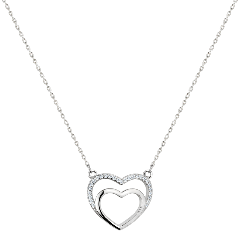Naszyjnik srebrny podwójne serce z cyrkoniami Amore