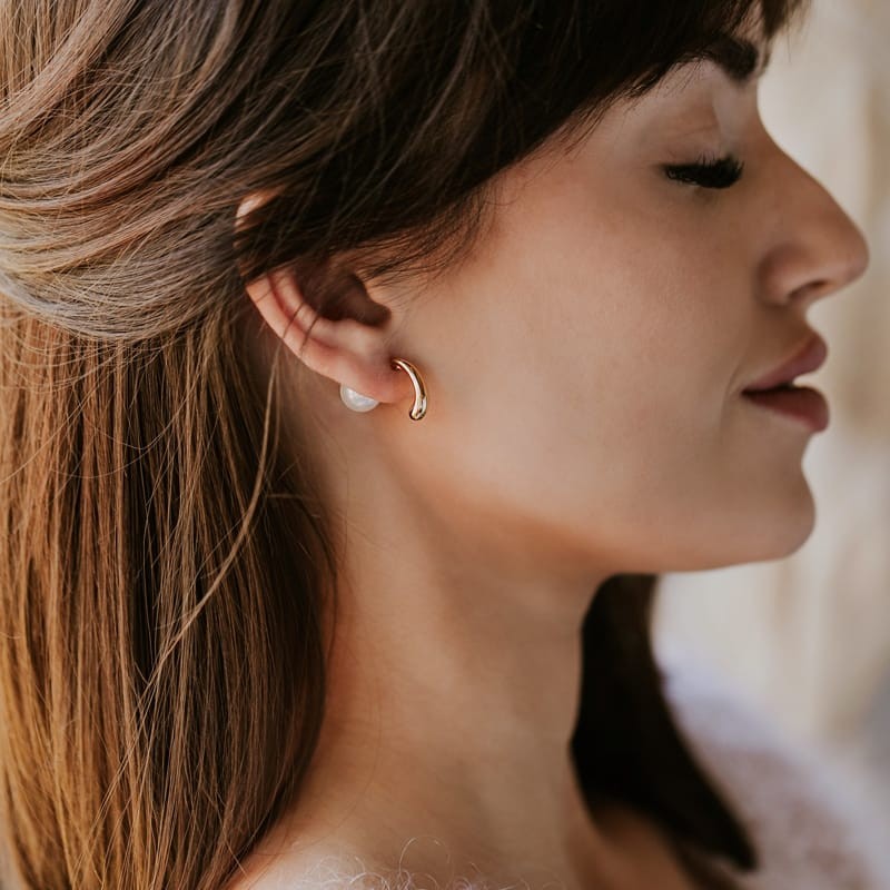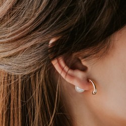 Perłowe kolczyki z kolekcji Pure Pearls. Zbudowane z gładkiej, syntetycznej perły oraz delikatnie wygiętego elementu wykonanego ze srebra pozłacanego. Złocenie nadaje im szlachetny, złoty odcień, który pięknie kontrastuje z jasną perłą. To doskonały wybór dla osób ceniących dyskretną, ale stylową biżuterię.