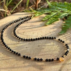 Delikatny naszyjnik wykonany z naturalnych kamieni – turmalinu, cytrynu i hematytu z kolekcji Midnight.