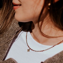 Naszyjnik MILA to połączenie głębi i elegancji. Delikatne fasetowane kamienie granatu w odcieniach bordo harmonijnie współgrają z subtelnym blaskiem kwarcu dymnego i metaliczną siłą hematytu. Wykończony złoconym srebrem oraz misterną zawieszką, naszyjnik staje się talizmanem kobiecej energii.