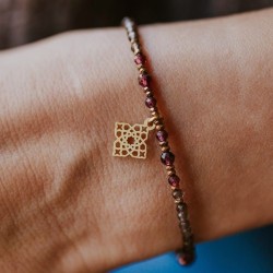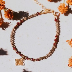 Bransoletka MILA to elegancka ozdoba na co dzień i wyjątkowe okazje. Połączenie bordo, szarości i złoconych akcentów sprawia, że bransoletka jest uniwersalnym dodatkiem, a zarazem talizmanem o silnym działaniu energetycznym.