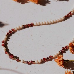 Naszyjnik srebrny pozłacany z granatem, kamieniem rzecznym i hematytem RIVA
