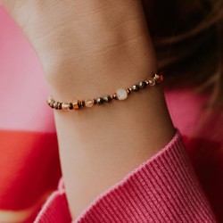 Bransoletka srebrna złocona z kamieni naturalnych Mokait Perły Żywioły