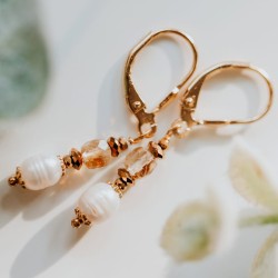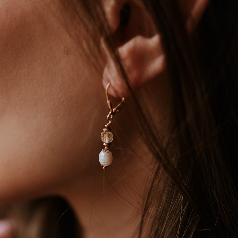 Kolczyki z kamieniami naturalnymi - cytryn, perły, hematyt - z kolekcji Perla.
