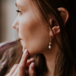 Subtelne kolczyki, które powstały z myślą o Mamie - jako symbol miłości, wdzięczności i wszystkiego, co najpiękniejsze. Ręcznie wykonane z naturalnych kamieni i osadzone w złoconym srebrze próby 925, urzekają lekkością oraz eleganckim charakterem. To wyjątkowa biżuteria, idealna na Dzień Mamy - pełna znaczeń i emocji.