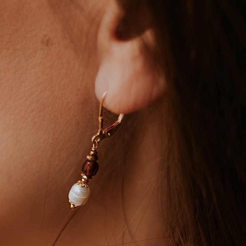 Kolczyki z granatem, perłą i hematytem to piękny sposób, by podziękować Mamie i wyrazić to, co najważniejsze. Idealne na Dzień Mamy - będą towarzyszyć każdego dnia, przypominając o miłości i wyjątkowej więzi.