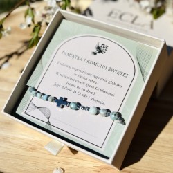 Sznurkowy różaniec z kamieni naturalnych to prezent, który niesie ze sobą coś więcej niż piękno - to towarzysz modlitwy i znak wiary. Dzięki eleganckiemu pudełku oraz dedykowanej wkładce z komunijnym przesłaniem, całość tworzy gotowy, przemyślany upominek - idealny na Pierwszą Komunię Świętą, bez potrzeby dodatkowego pakowania. To wyjątkowa pamiątka na lata, która podkreśla duchowy charakter tego ważnego dnia i pozostaje bliska sercu na długo.