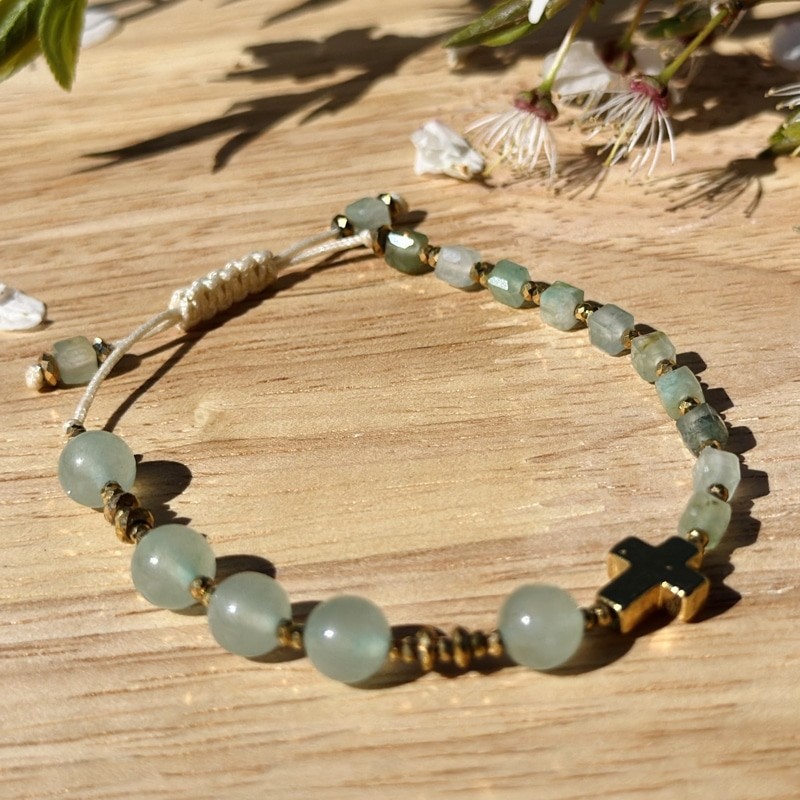 Różaniec bransoletka z kamieni naturalnych Awenturyn |Pierwsza Komunia Święta