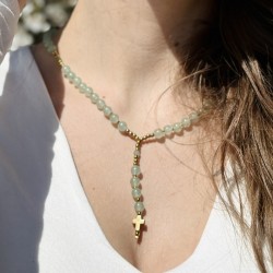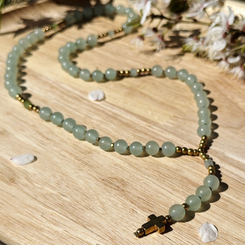 Różaniec naszyjnik z kamieni naturalnych Awenturyn |Pierwsza Komunia Święta