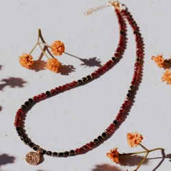 Naszyjnik srebrny pozłacany z czarnym turmalinem, granatem i hematytem ASTRA