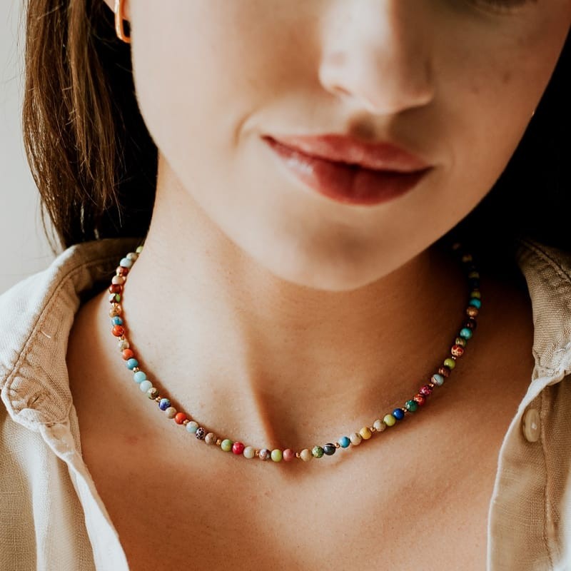 Naszyjnik z jaspisem cesarskim, bransoletka z kamieni naturalnych czy choker świetnie wpisują się w styl boho, minimalistyczny i elegancki.
