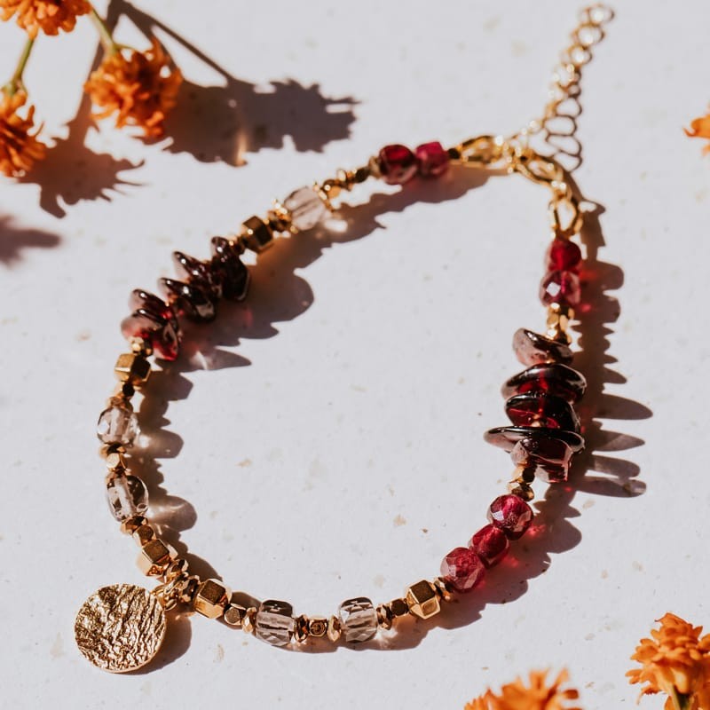 Połączenie granatu, hematytu i kwarcu dymnego sprawia, że ta bransoletka z kamieni naturalnych na wyciszenie doskonale wpisuje się w ideę codziennego wsparcia. Jest minimalistyczna, elegancka i bardzo uniwersalna.