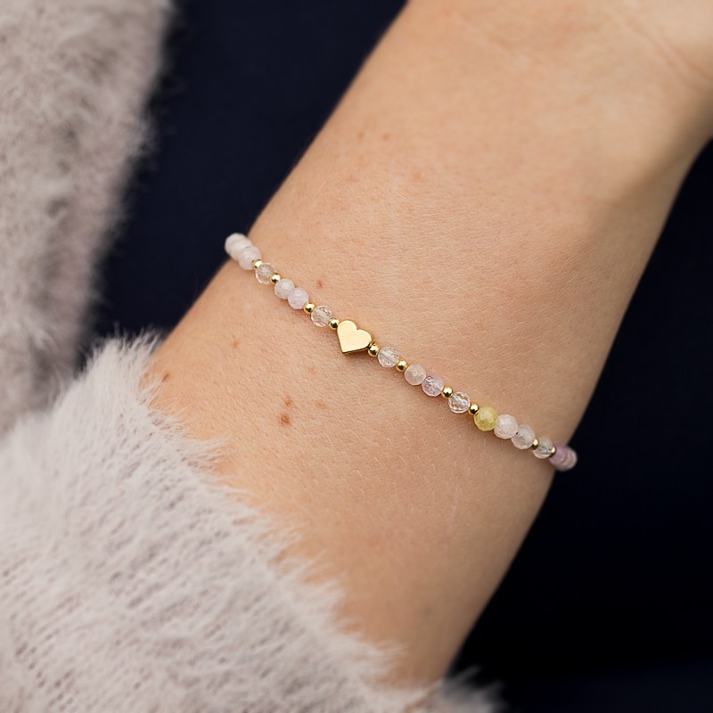 Bransoletka z kryształem górskim, morganitem i kunzytem — delikatność dla emocji