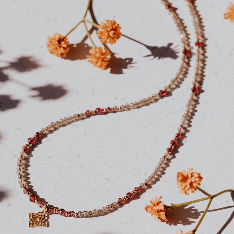 Naszyjnik z kwarcem dymnym, granatem i hematytem – ugruntowanie i siła