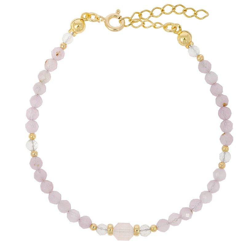 Bransoletka z kunzytem, chalcedonem i kryształem górskim – delikatne wyciszenie