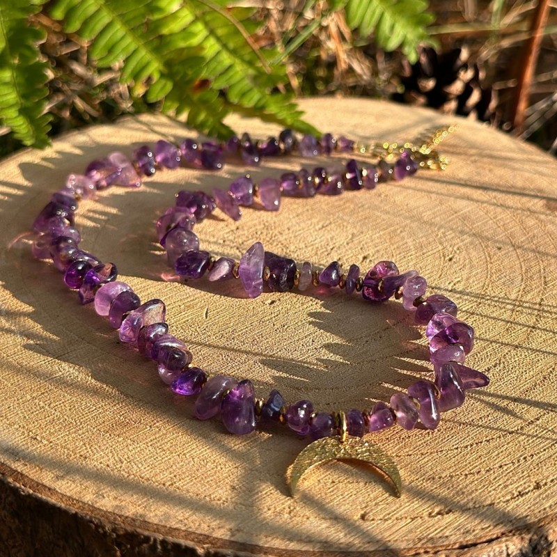 Naszyjnik z ametystem i księżycem – spokój i intuicja