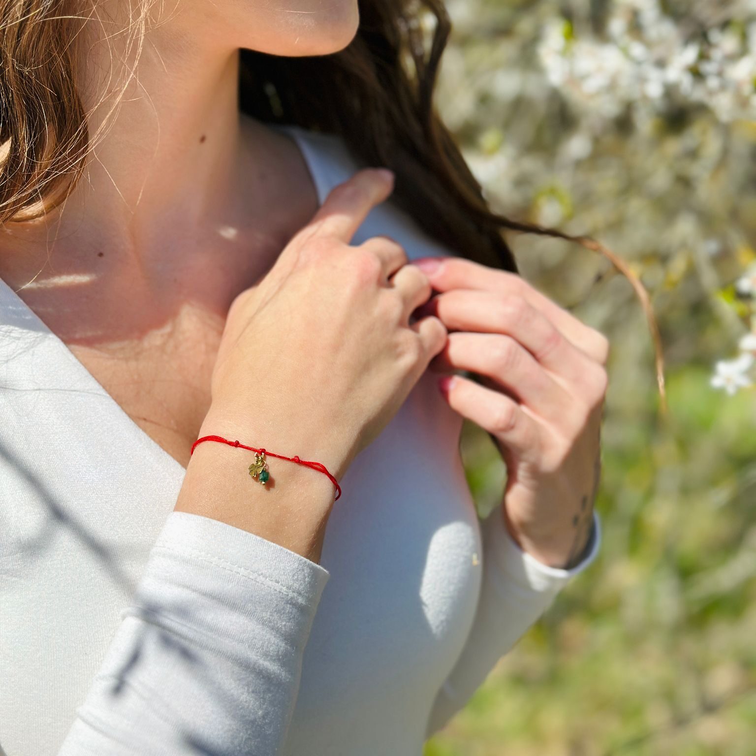 Czerwony sznurek od lat uznawany jest za znak ochrony i dobrej energii. Koniczynka to uniwersalny symbol szczęścia, a awenturyn kojarzony jest z lekkością, spokojem i pozytywnym nastawieniem. To sprawia, że jest to idealna bransoletka z kamieni naturalnych na maturę, która może towarzyszyć w najważniejszych momentach.