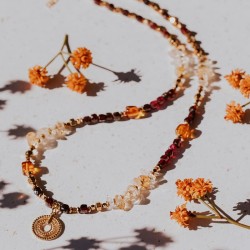 Naszyjnik srebrny pozłacany z bursztynem, granatem, cytrynem, hematytem VITA Cena 289,00 zł Do koszyka